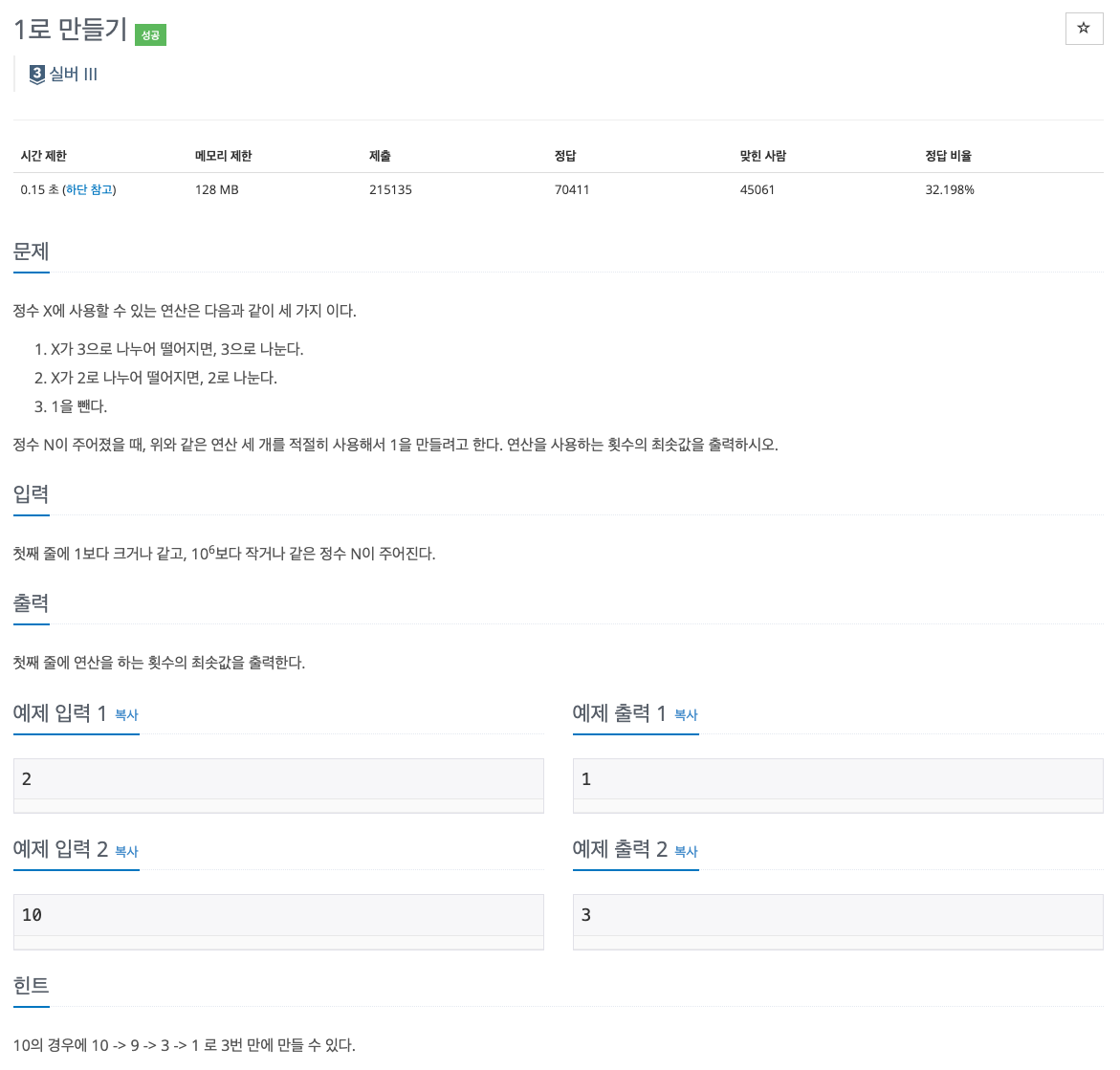 세 값 중 최소값이 memo[n]에 들어가게 된다