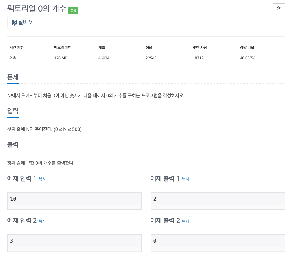 1676번: 팩토리얼 0의 개수