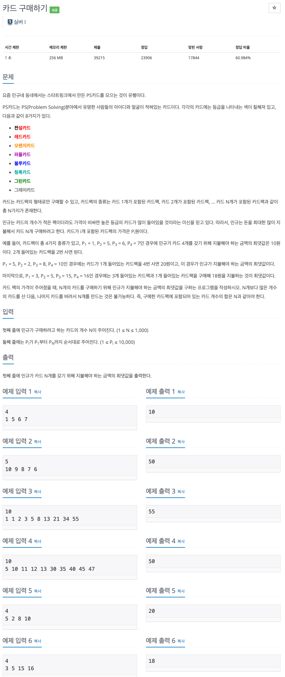 https://www.acmicpc.net/problem/11052