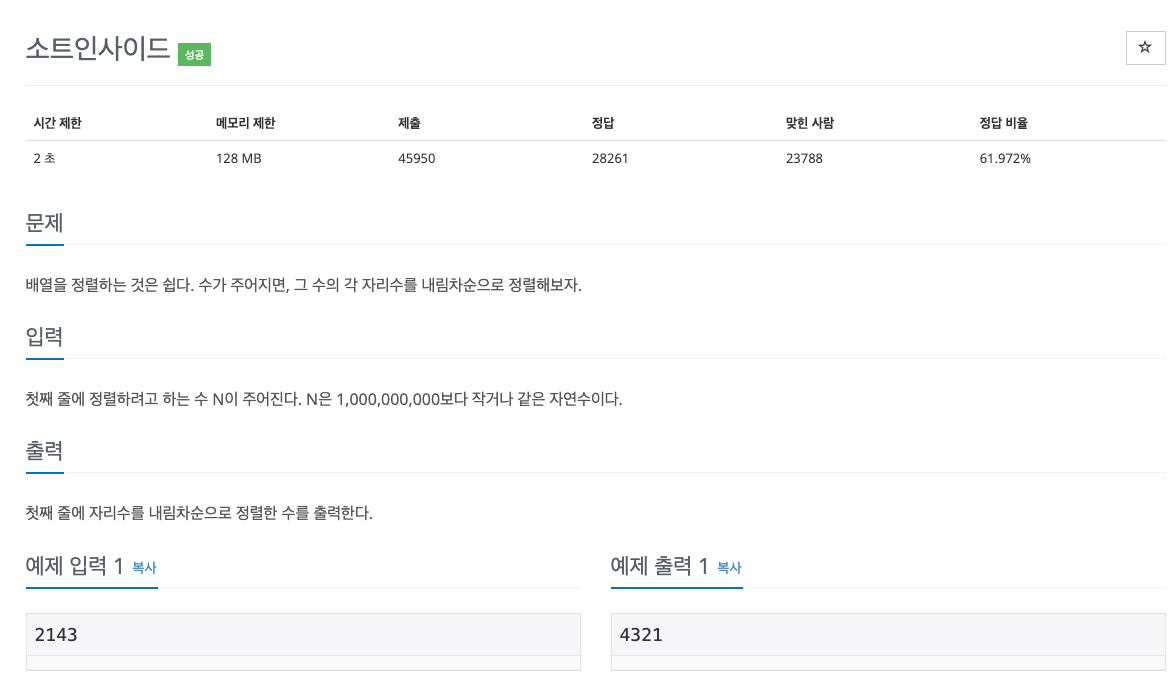 입력값의 최대 개수가 10으로 작았기 때문에 버블 정렬로도 쉽게 풀 수 있었다.