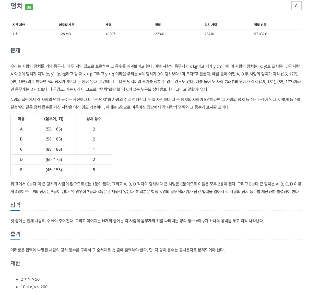 - i번째랑 i+1번째 신체 조건 비교, i가 i+i보다 덩치가 작으면 rank[i]의 값을 증가시킴