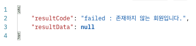 로그인이 실패했을 때는 resultCode에 로그인 서비스에서 주는 Error메세지를 넣어서 클라이언트에게 결과를 알려줬다.