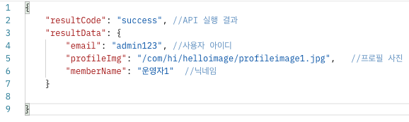 로그인에 성공했을 때 아래와 같은 결과를 JSON으로 넘겨줘야 한다.