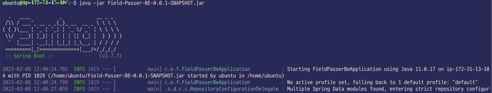 서버에서 jar 파일을 실행합니다. 스프링부트 프로젝트는 톰캣 서버을 내장하고 있기 때문에 별도의 설정 없이 실행할 수 있습니다.