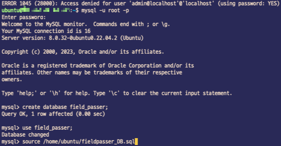 사실 데이터베이스 생성을 root 계정에서 하면 안되지만 임시 배포이기 때문에 이번엔 root 계정에서 하겠습니다.