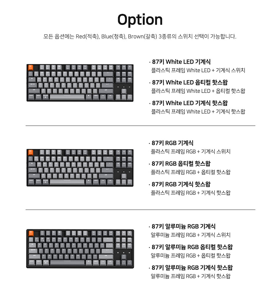 제가 구매한 모델은 87키 알루미늄 RGB 기계식 모델입니다.
