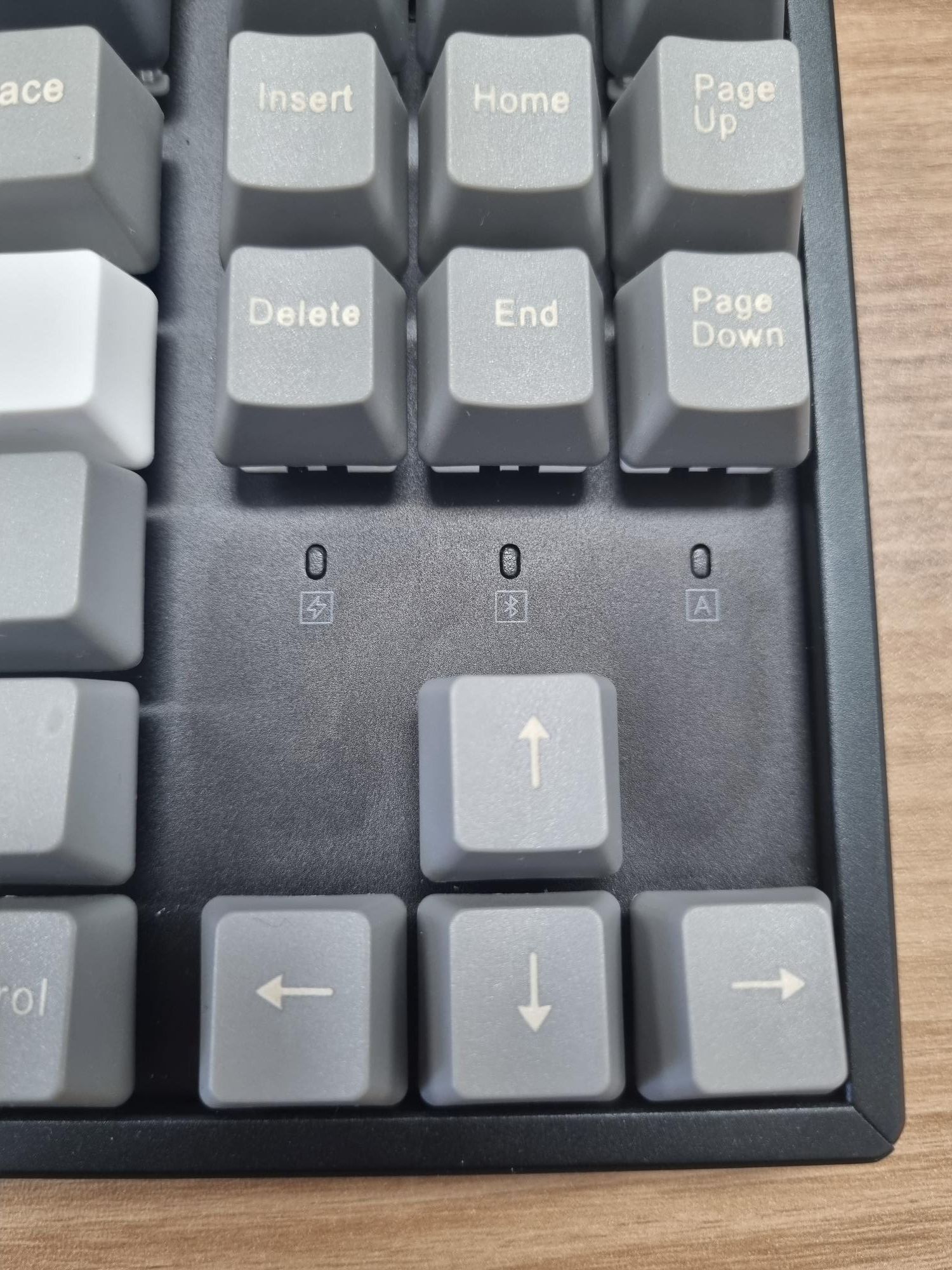 방향키 위쪽에는 세 개의 LED가 키보드의 상태를 알려줍니다.