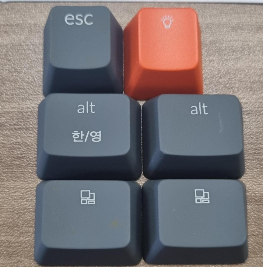제가 지금 사용하고 있는 키캡은 순정 키캡이 아니라 인터넷에서 산 PBT 키캡입니다. 펑션키 부분만 순정 키캡을 사용하고 있어요.