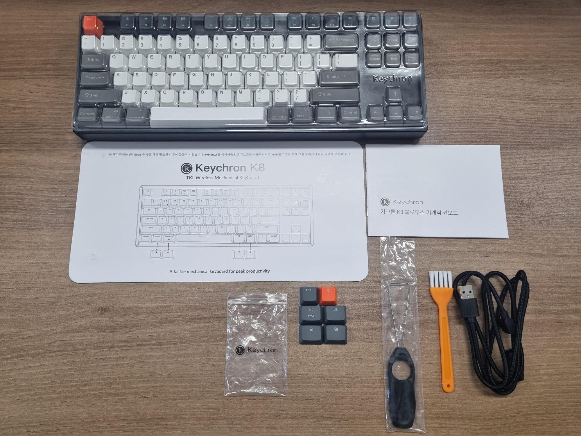 그중 오늘 리뷰할 키보드는 키크론의 K8 갈축 모델을 가져왔어요.