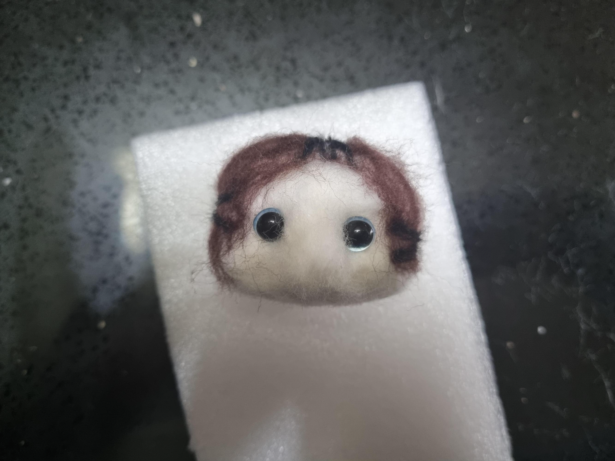 방해꾼을 저지하며 열심히 찔러주면 이렇게 타원형 모양의 털뭉치가 완성된다.