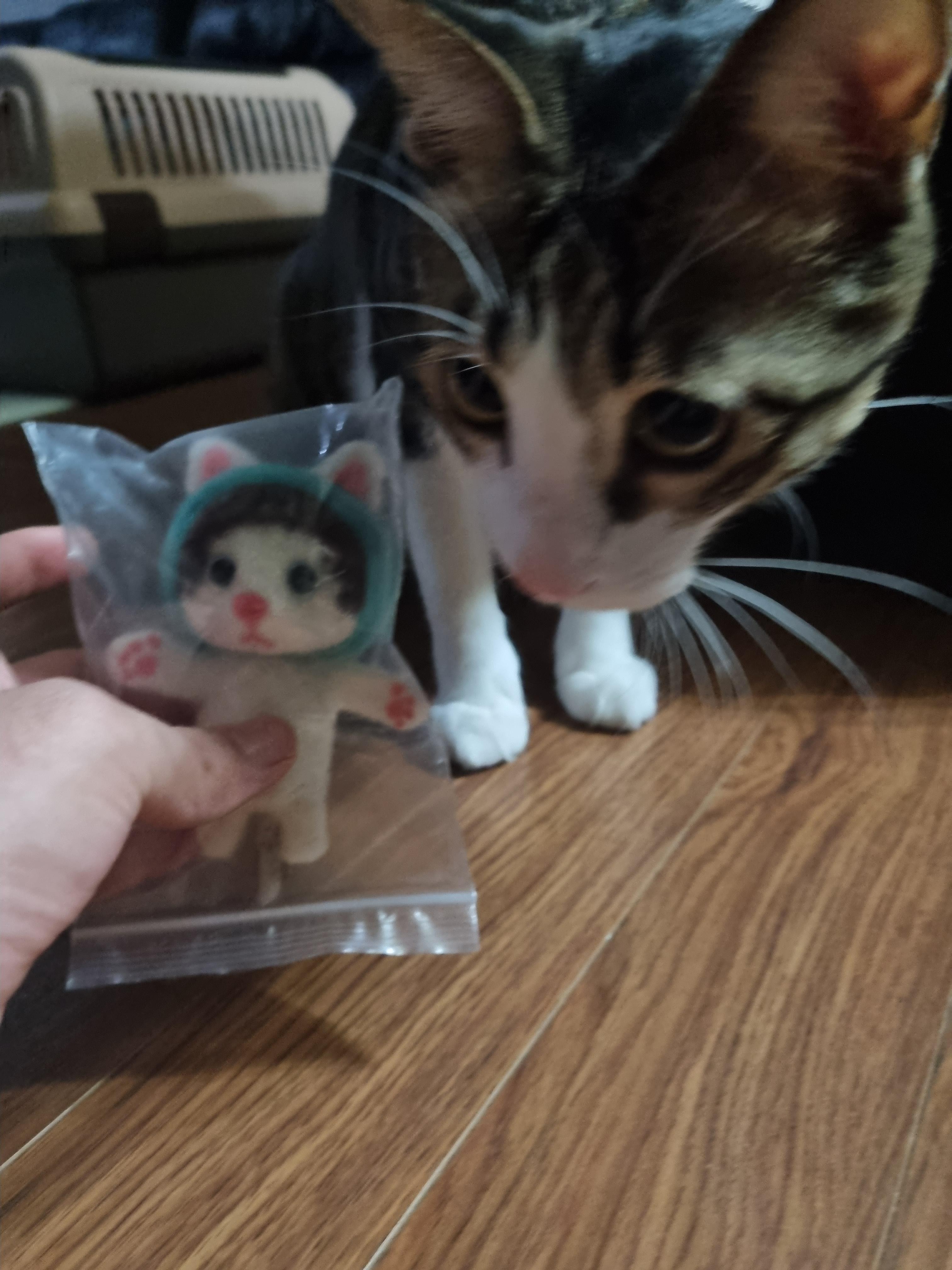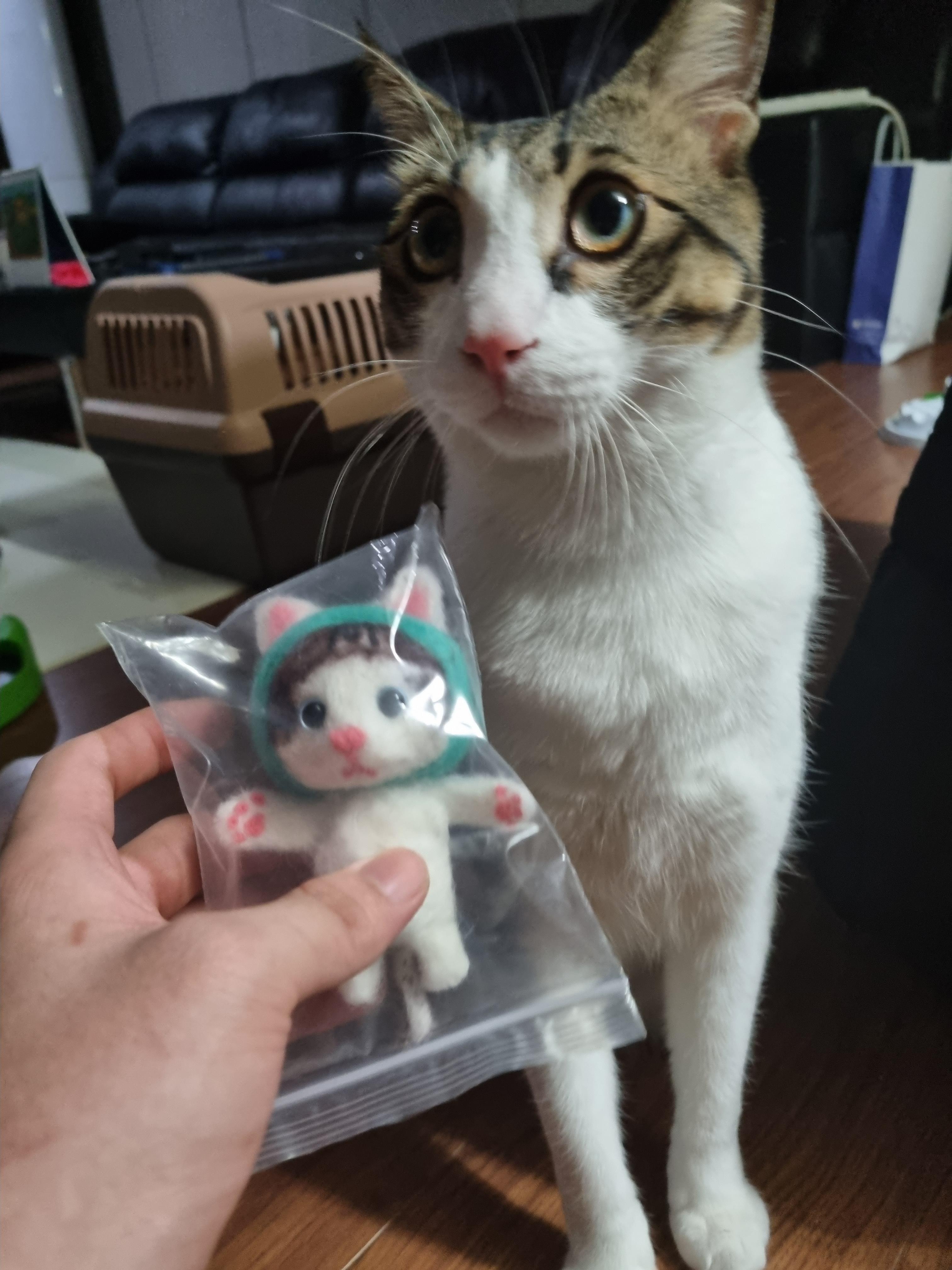 "자, 이건 너야!!"라고 대뜸 들이대니까 처음에는 '이게 뭐지..?'라는 표정으로 보다가 본인과 똑같이 생긴 인형이 나타나자 어이가 없었는지 나를 쳐다봤다.