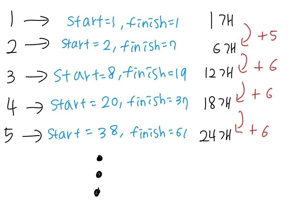 finish = start + (6 * layer) - 1; //finish 값 변경