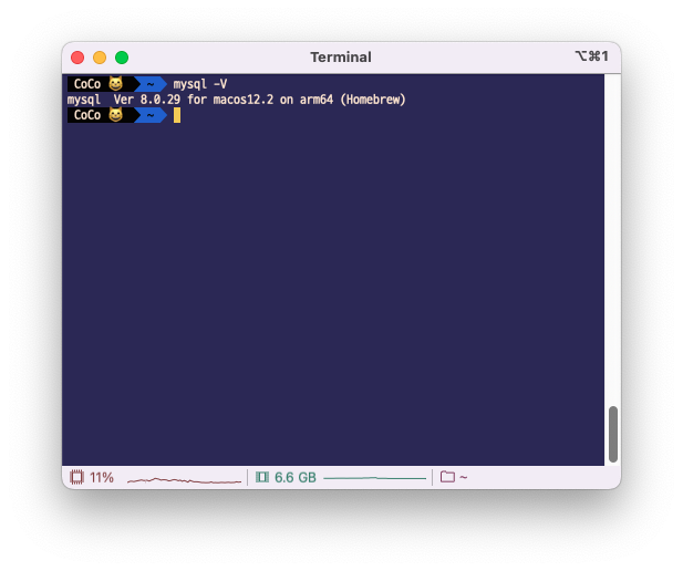 설치가 끝났으면 mysql의 버전을 출력하여 설치가 정상적으로 되었는지 확인한다.