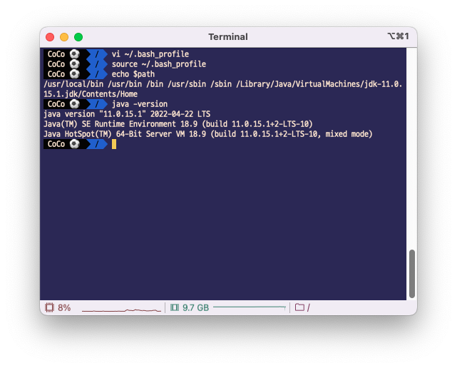 export JAVA_HOME=/Library/Java/JavaVirtualMachines/(자바 버전).jdk/Contents/Home