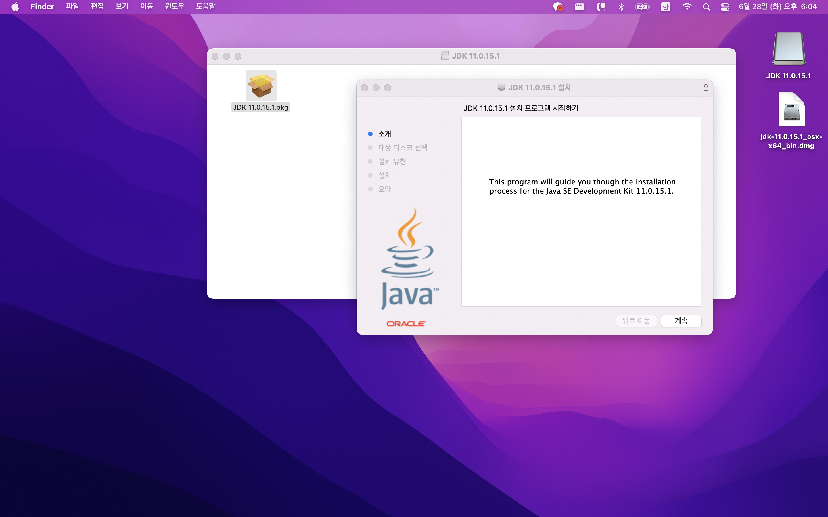 다운로드가 끝났으면 dmg 파일을 실행해서 설치를 진행한다.