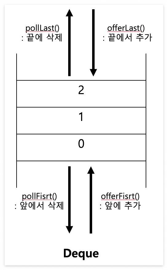 자바에서는 ArrayDeque와 LinkedList를 사용하여 구현할 수 있다.