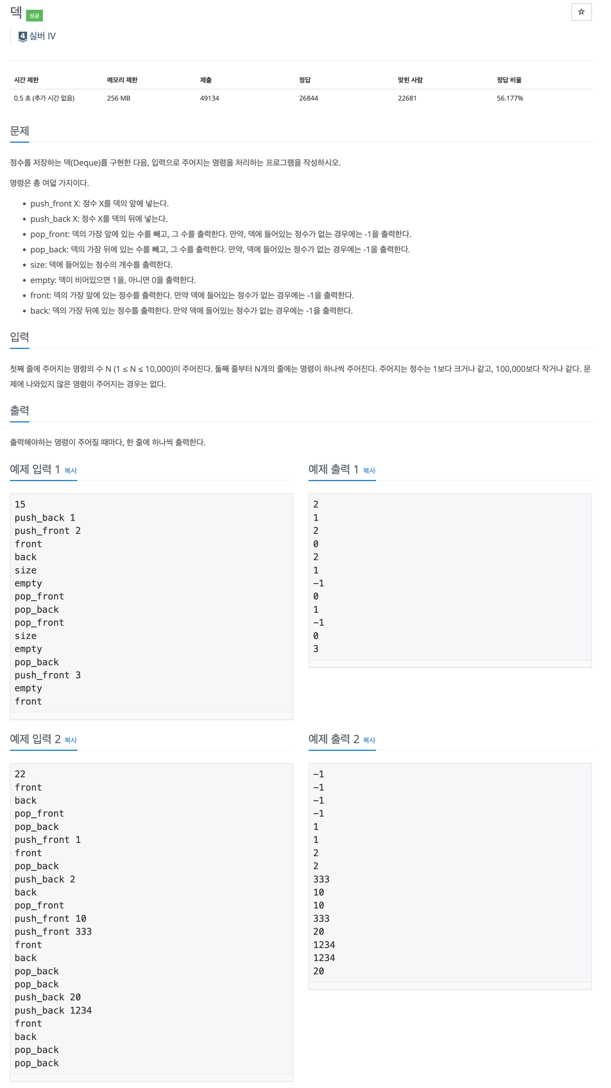 덱은 디큐(deque)라고도 불리며, 양쪽 끝에서 추가와 삭제가 가능한 자료구조다.