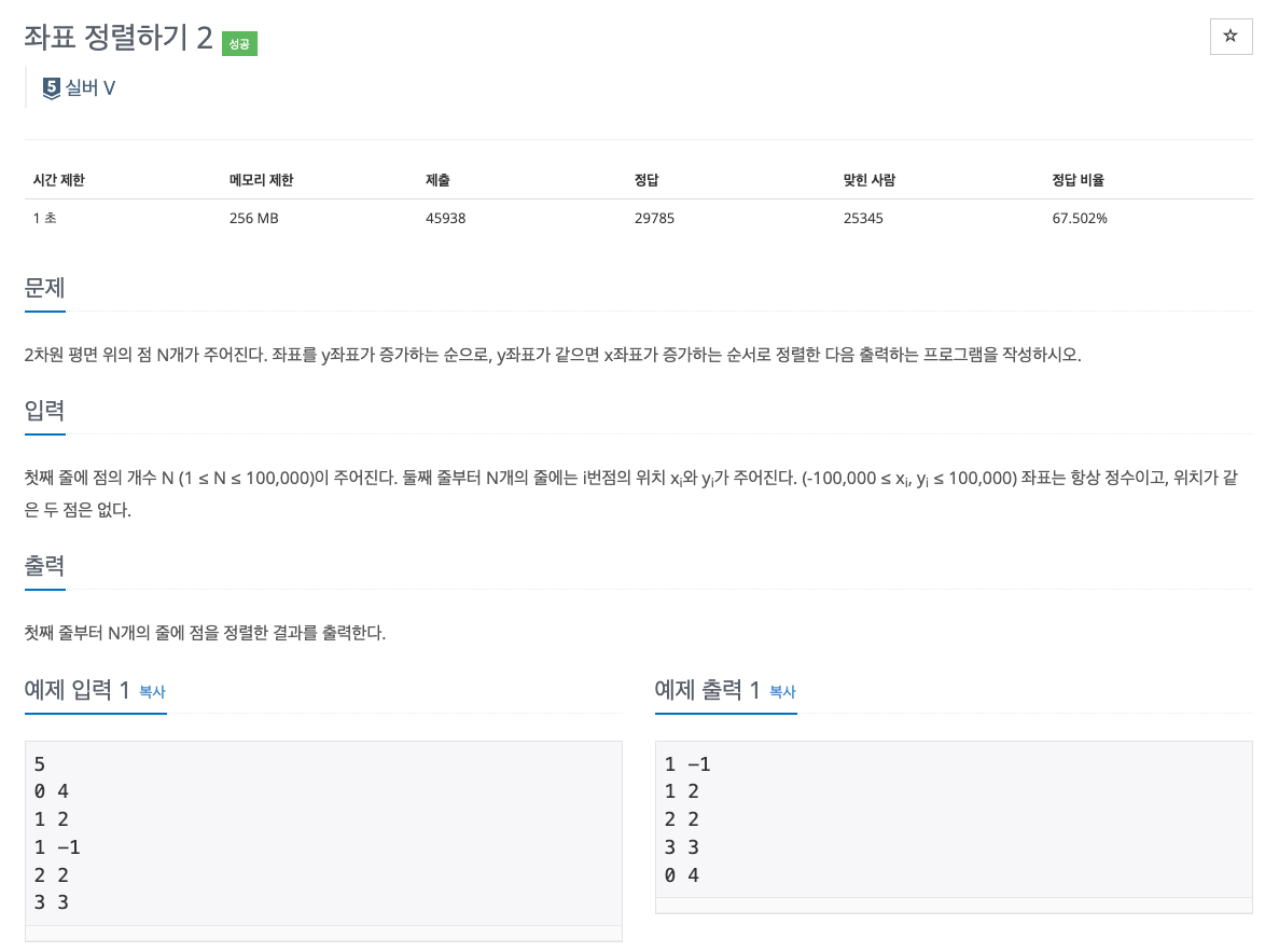 https://www.acmicpc.net/problem/11651